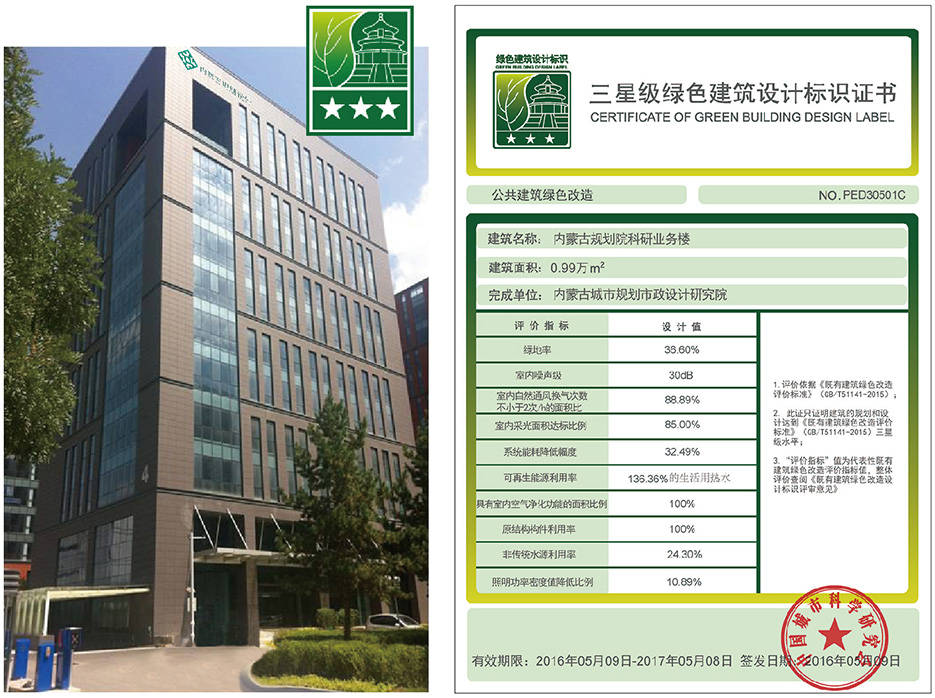 2016年4月15日通過了由中國城市科學(xué)研究會組織的既有建筑綠色改造項(xiàng)目專家評審會,成為全國第一批第一個(gè)獲得綠色建筑三星級設(shè)計(jì)標(biāo)識的公共建筑。
